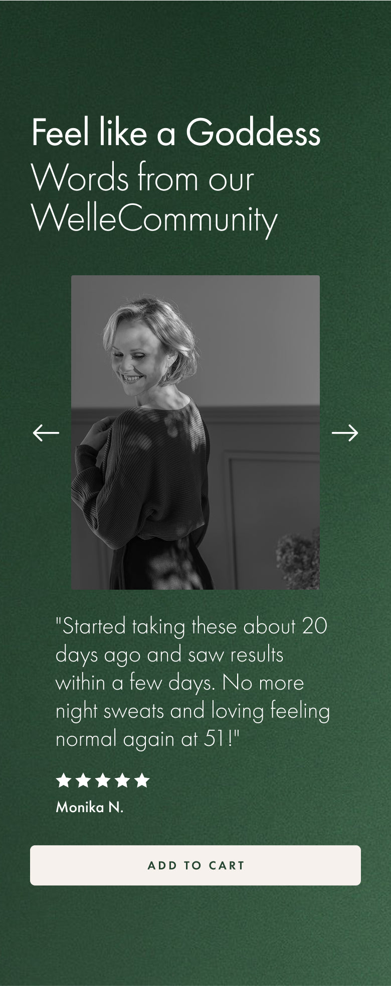 “Two capsules each day of this science-led hormonal support will help you to awaken your inner goddess to embrace this creative, vibrant, powerful new chapter. Replenish your passion for life with this blend of red clover, agnus castus and Siberian ginseng, while supporting a healthy mood balance and your nervous system. Take two capsules daily to enjoy the vibrant, fulfilling life you long for.”